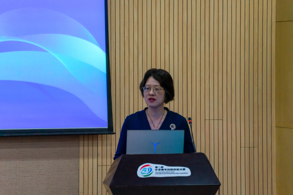 半决赛循环经济和工业制造领域秘书长田鸽介绍大赛筹备情况