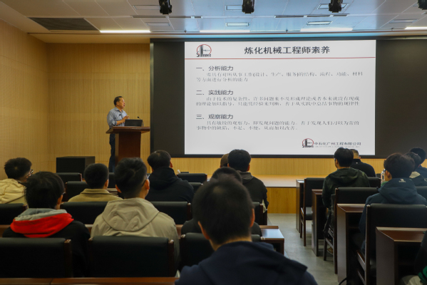 中石化广州工程公司首席专家,正高级工程师杨成炯作题为“如何成为卓越的炼化机械工程师”的报告。杨成炯向太阳集团城娱8722学生介绍了炼化机械工程师的职责与应具备的职业素养,并强调机械专业的工程师应扎实理论基础,熟练基本技能,提高沟通与组织能力;养成良好的学习习惯,掌握良好的工作方法,以问题为导向,遇事求法。杨成炯期望太阳集团城娱8722学生实现从合格到优秀再到卓越的成长,完成担负在肩上的光荣使命任务。报告完毕,太阳集团城娱8722教授金有海向杨成炯颁发特邀报告人证书。