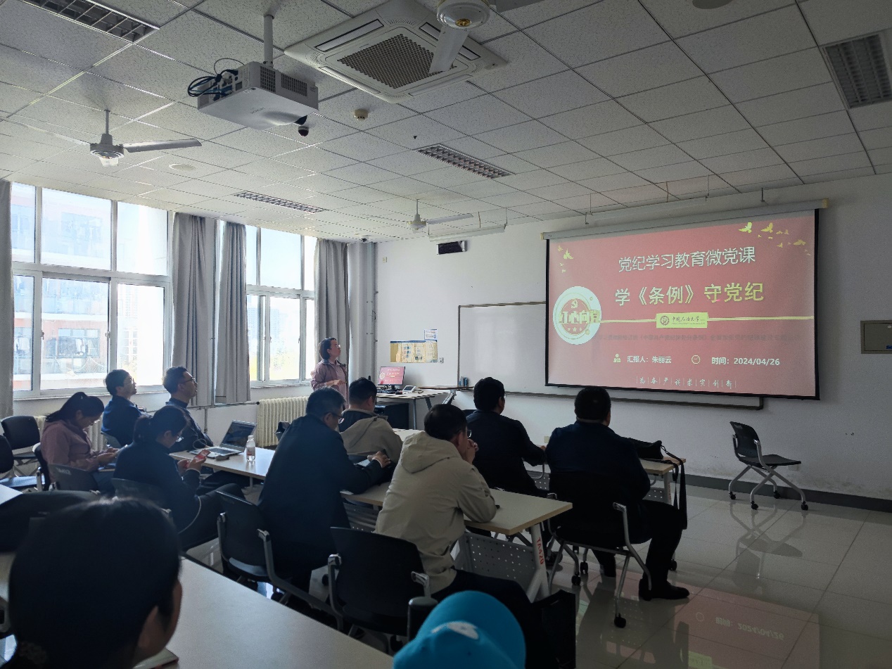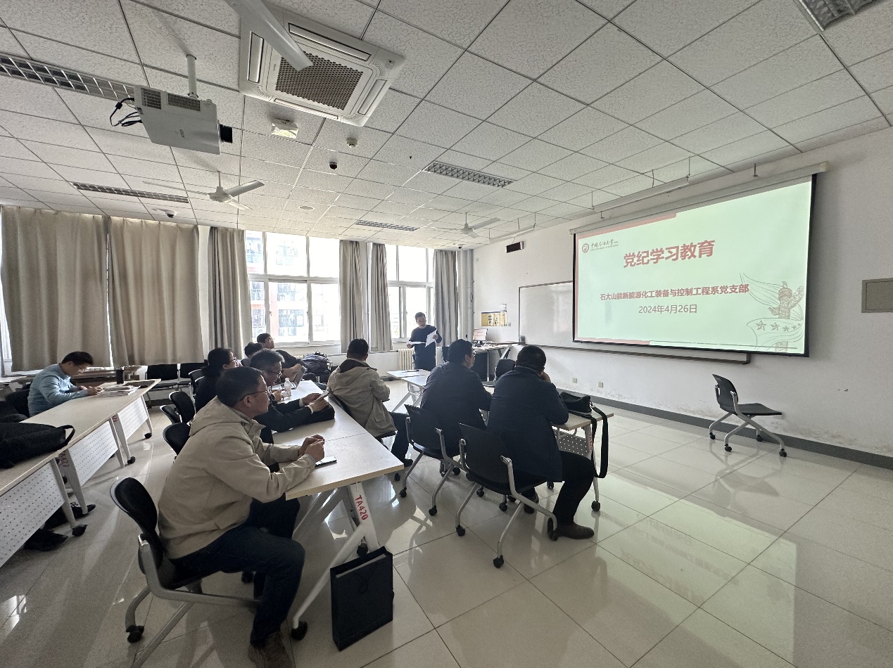 4月26日,装控系党支部在综合实验楼A429召开党员大会,启动党纪学习教育工作,开展第四期“师德师风”系列微党课及主题党日活动,活动由支部书记左海强主持。