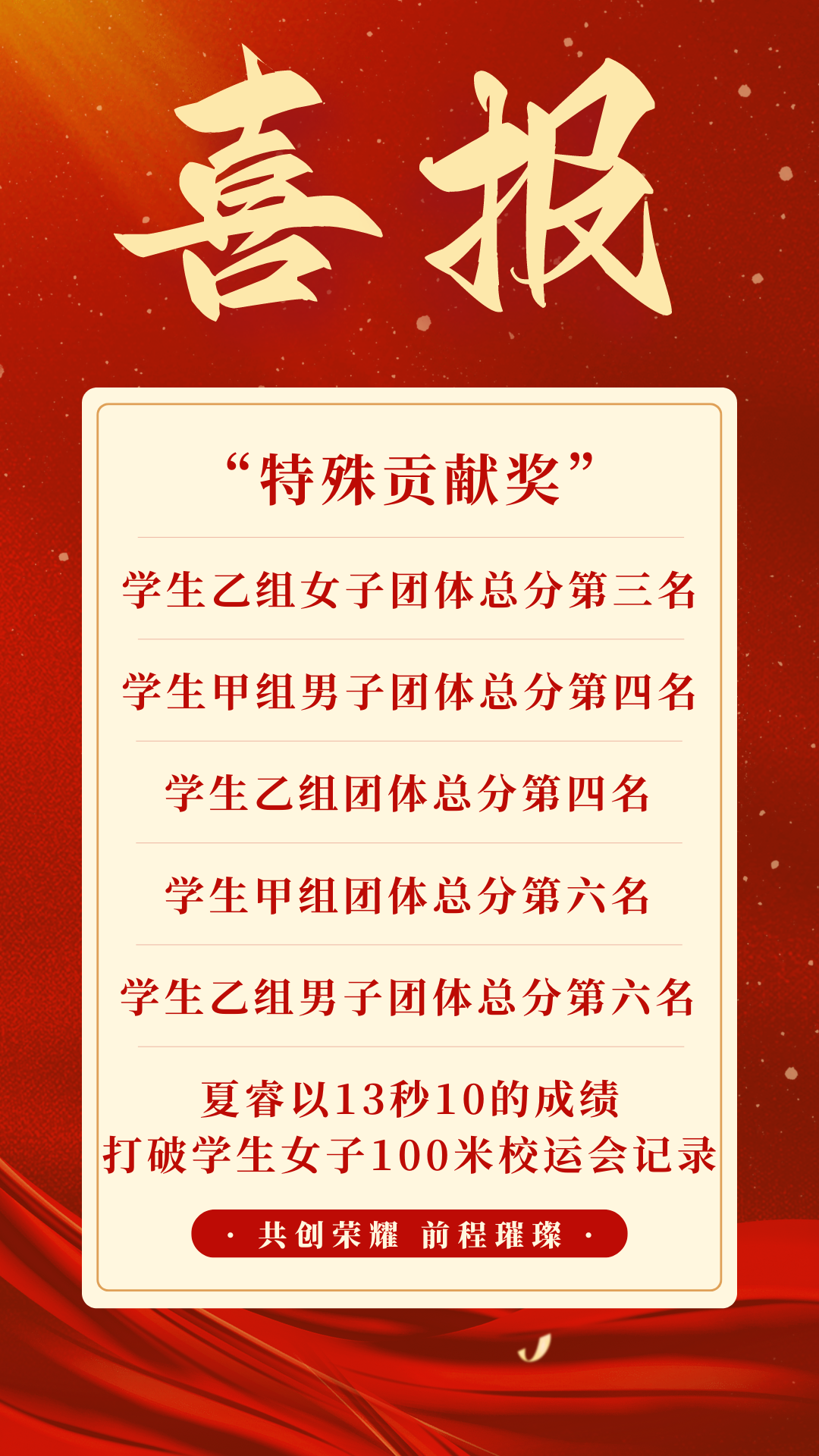 5月18日下午,我校2024年运动会圆满完成各项预定赛程,在唐岛湾校区体育场落下帷幕。我院61名学生运动员,29名教职工代表学院出征,最终,我院获得“特殊贡献奖”、学生乙组女子团体总分第三名、学生甲组男子团体总分第四名、学生乙组团体总分第四名、学生乙组男子团体总分第六名、学生甲组团体总分第六名等多项荣誉,同时学院博士夏睿以13秒10的成绩打破了学校1988年尘封至今的女子100米校运会记录,再创运动会佳绩!
