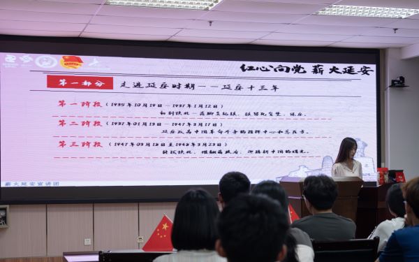 6月15日,宣讲活动在工科楼D座345教室成功举办。薪火延安宣讲团成员胡人仁王志达担任主讲人,为支部成员深入解读了延安精神与习近平总书记的生态文明思想。胡人仁从延安精神的形成、发展、主要内容等方面,全面剖析了延安精神的丰富内涵与时代价值并介绍我校传承延安精神的举措王志达结合我国生态文明建设的成功实践,生动讲解了生态文明思想的深层含义、基本原则和实践路径,激发了支部成员积极参与生态文明建设和绿色环保实践的热情。