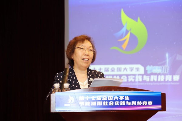 何雅玲院士在致辞中谈到,“进入新时代,节能减排大赛被赋予新的使命和任务,作为教育部落实国家‘节能减排全民行动计划’的重要举措,全国大学生节能减排社会实践与科技竞赛紧密围绕国家能源与环境政策,紧密对接国家和区域重大发展需求。通过一年一年的赓续发展,绿色节能和双碳战略已经深深地根植到了广大青年大学生的心中。”