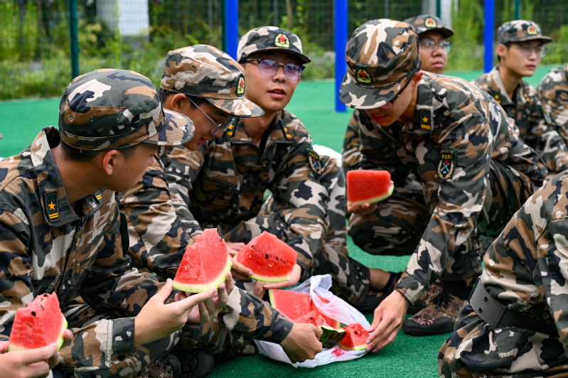 除为学生准备的西瓜用于解暑降温外,学院关工委还为学生准备了学习用具,期盼新生能够抓住大学时光,努力学习,不负韶华。外此次慰问活动不仅展现了学院对本科生军训工作的深切关怀与支持,有效提升了新生的训练热情与集体荣誉感,为后续军训工作的顺利开展奠定了坚实的基础。同时通过师生之间面对面的交流互动,师生间的情谊得到了进一步加深,新生们对学院及所学专业的认同感与归属感也显著增强,为他们在未来的大学生中书写更加精彩的篇章注入了强大的动力。