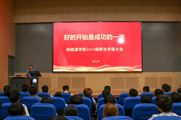 郭晓静向学生们讲解大学学习和生活上的制度与注意事项。郭晓静介绍2024级学工队伍,介绍各项制度,提出日常行为规范要求,提醒防范诈骗与网贷陷阱。“好的开始是成功的一半。”郭晓静强调自入学起建设优良学风的重要性,明确学习是大学生的第一要务,并讲解培养方案及毕业要求,希望学生们统筹四年学习方向,做好个人生涯规划。