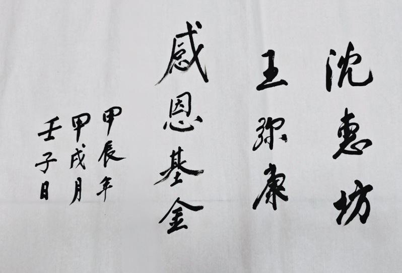 王弥康为感恩基金题字(2024年) 秦政 摄影
