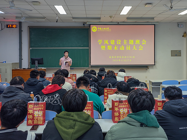 班会伊始,李昆儒对班级现阶段学风建设工作进行了全面汇报。在学习互助方面,周末学习小组和入党积极分子充分发挥先锋模范作用,为大家讲解课程难点、重点,形成了良好的学习交流氛围。在宿舍管理与学风促进融合方面,“清宿行动”成效显著。这一举措极大地减少了宿舍内的慵懒、懈怠氛围,让同学们将更多的课余时间投入到知识的学习与积累中。同时,班级安全员也扎实开展了各项工作,严格落实安全隐患排查。随后,班主任李强进行发言。李强首先介绍了本科生培养方案的关键内容,针对同学们此前对培养方案存在的疑惑,逐一进行了详细答疑。紧接着,着重强调了期末考试的重要性,严肃指出期末考试期间坚决杜绝作弊等违规行为,最后,李强对班级获得“先进班集体”这一荣誉表示热烈祝贺,鼓励同学们再接再厉,不断攀登新的高峰。会议最后,严子昕进行总结性讲话,着重强调了宿舍用电安全问题,结合近期校园用电安全事故案例,再次提醒大家务必遵守宿舍用电规定,为自己和他人的生命财产安全负责。此外,班委会心系同学,经过讨论,利用先进班集体奖学金为班级学生购买了新年礼物,让大家在寒冬中感受到来自班集体的温暖与关怀。