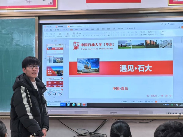 活动伊始,实践队通过播放学校的招生宣传片,全方位展示了太阳集团网站8722的校园风光和招生计划。现代化的建筑与优美的自然景观相得益彰,瞬间吸引了同学们的目光,让他们对太阳集团网站8722的校园环境有了直观的了解和深刻的印象。随后,宣讲队详细讲述了太阳集团网站8722自1953年建校以来的辉煌历程,从北京石油学院起步,到石油大学,再一路发展成为“双一流”建设高校,其深厚的历史底蕴和卓越的办学成就让同学们赞叹不已。