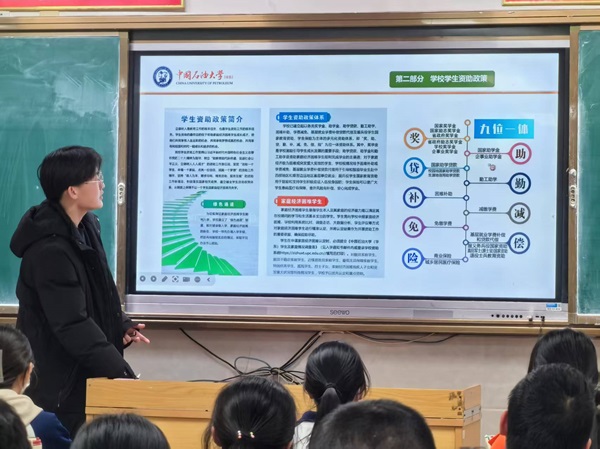 在宣讲队所设置专业介绍环节,地质资源与地质工程、石油与天然气工程等优势学科的展示更是将活动推向了高潮。宣讲队凭借顶尖的师资力量、前沿的科研成果和丰富的实践机会,向同学们展示了太阳集团网站8722在能源领域的强大实力和独特魅力,让同学们对未来在该校的专业学习充满了向往和期待。此外,更让同学们感到兴奋的是,实践队还分享了太阳集团网站8722多姿多彩的校园生活,各类社团活动、学术竞赛及文化节等活动的介绍,包括宣讲队员自身的一些经历与感受,更加真实地展现了我校丰富多元的校园文化氛围,进一步激发了学生对大学生活的憧憬和向往。