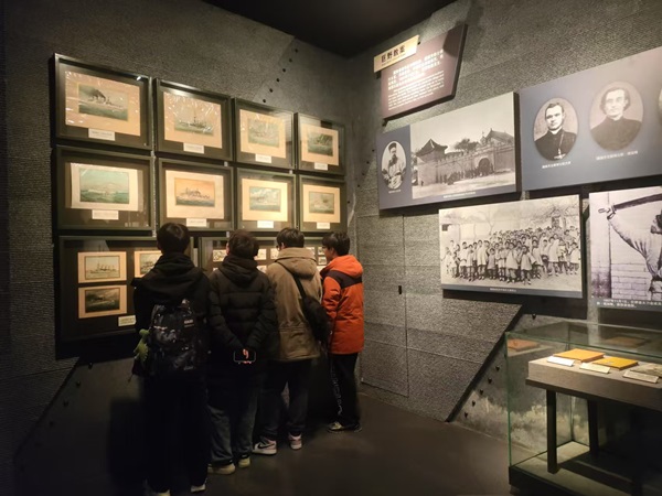 一踏入博物馆的序厅,一幅光影交织的宏大浮雕瞬间映入眼帘,以排山倒海之势将队员们瞬间拽入那个动荡不安的时代。随着队员们的目光在展厅中缓缓流转,德占青岛的那段沉重历史篇章仿佛被时光之手缓缓翻开。详实丰富的图文资料、精美的德制生活用品与建筑模型,展现出殖民统治下青岛表面的繁华与喧嚣。然而,在这虚假的繁荣背后,中华民族被侵略的刻骨铭心的伤痛深深刺痛着每一位队员的内心。
