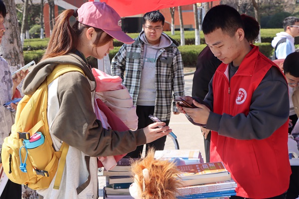 在义卖区域,二手书籍尤其受到热捧。从文学经典到科普读物,再到各类学习辅导资料,种类繁多的书籍吸引了众多学生驻足选购。参与义卖的人次超过了两百人,学生们在挑选心仪书籍的同时,也为公益事业贡献了自己的力量,让知识在新主人手中得以延续价值。一位返校的2006级石工校友表示:“偶然回到熟悉的校园,看到如此温馨的活动现场,我也选购了一些心仪的书籍。参与这样的活动,总能淘到一些其他学生不再需要却对我而言很有价值的东西。”