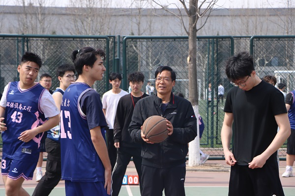 2023级辅导员秦政表示春日的温度就同在场的同学一样温暖又有力量,希望每一位同学都能在比赛中闪耀出属于自己的光芒,同时也强调了篮球比赛的安全性,提醒各篮球队成员不论什么时候都要将安全放到第一位,为后续的比赛安全筑牢了思想防线,随后裁判员代表王奕栋进行宣誓,表示各裁判将会公平公正公开的评判每一场比赛,运动员代表王琳保证会拼尽全力,赛出水平赛出风格。最后,各级辅导员分别为今天的各场比赛开球。