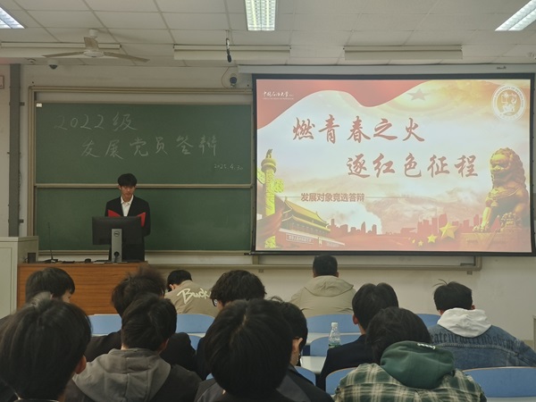 本次答辩重点围绕入党动机、思想动态、学业情况、科研竞赛、学生工作、志愿服务等方面详细展现入党积极分子的思想成长及今后的努力方向。答辩会开始前,骆浩冉指出:“此次答辩既是总结自身在培养阶段收获的成果,另一方面也借此机会来认真审视自己未来发展的目标。作为一名积极分子,应时刻以党员的标准要求自己,向党组织靠拢,从小事做起,从身边做起,树立为共产主义奋斗终身的坚定信念。”答辩开始后,学生们通过PPT全方位展示自身实际情况,体现出入党积极分子在日常生活中做出的表率作用。答辩结束后,能动2201王佳硕说道:“此次答辩不仅坚定了我加入中国共产党的决心与信心,更激发了我在未来的学习与生活中要以更高标准要求自己,持续向党组织靠拢。”