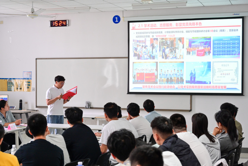 党支部书记丁元贺以《紧抓科学研究 争当能源先锋 建成能源特色型研究生样板党支部》为题详细汇报了第四批“全国党建工作样板支部”获批以来的的培育进展情况,重点介绍了支部在“党建+科研+志愿服务”融合模式下的创新举措,为支部建设焕发出了新的动力。