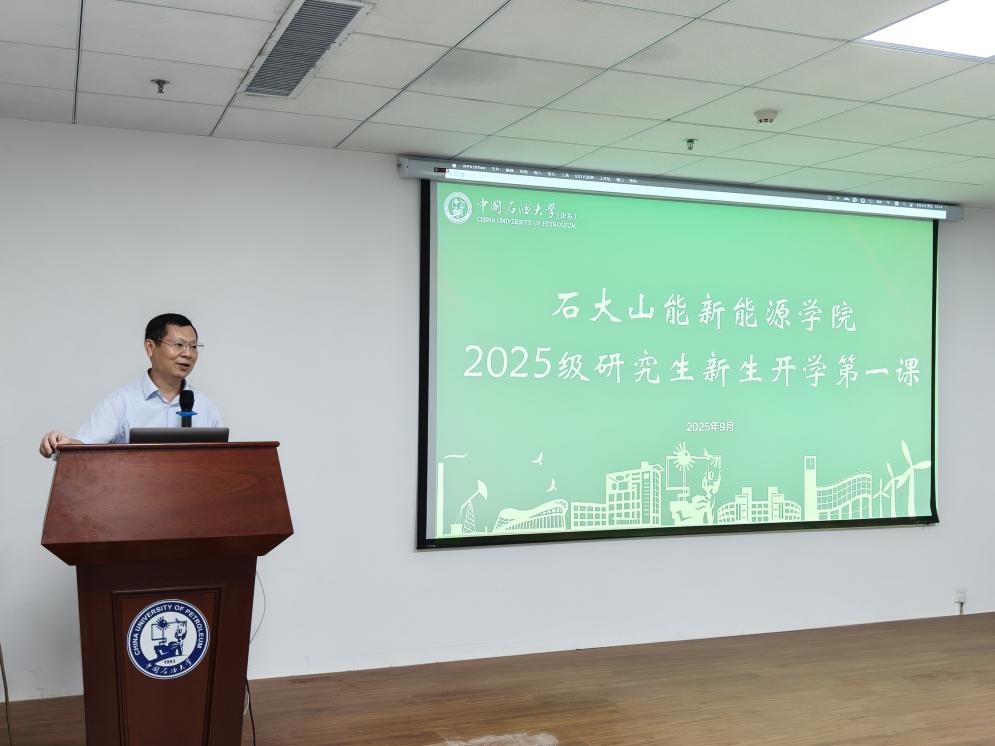 随后,学院副院长赵东亚教授为新生讲授开学第一课。赵东亚教授以系统深入的讲解,从学科发展、科研方向、成长路径等维度为新生答疑解惑,既解读了新能源领域的发展机遇与挑战,也为新生如何规划科研学习、找准奋斗目标提供了专业指导。