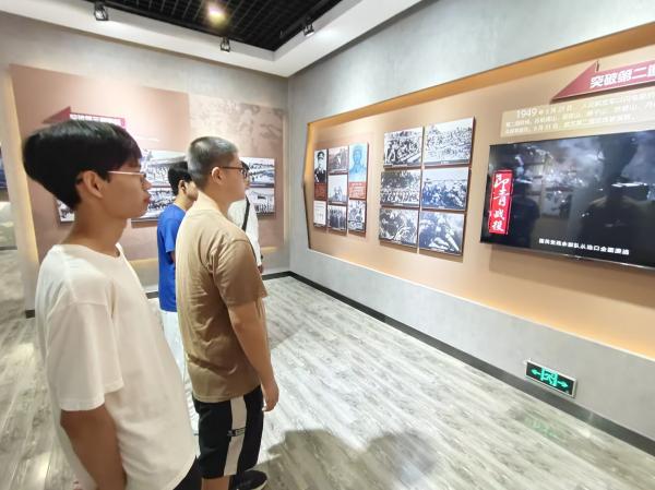 同学们以分组的形式前往抗战馆、军魂馆等展区依次参观。在“青岛地区抗日武装斗争”专题展区,大家驻足于英烈事迹展板前,认真聆听语音讲解中关于孙春林、周浩然等烈士的战斗故事;面对展柜中陈列的步枪、望远镜等革命文物,同学们轻声交流,直观感受烽火岁月里先烈们的艰辛与坚守,不少人还拿出笔记本记录下触动内心的历史细节。