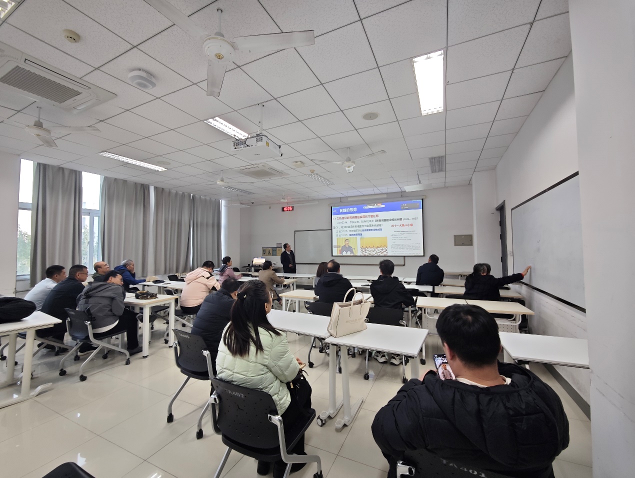 黄善波老师围绕“教育家精神的时代内涵与实践路径”展开深度讲解。他结合高等教育面临的新形势,剖析了能动专业教师践行教育家精神的具体要求。针对“高等教育的使命与立德树人新格局”,黄老师强调,能动系需聚焦“双碳”目标下的人才需求,将“课程思政”与专业教学深度融合,在《热力学》《传热学》等核心课程中融入家国情怀与行业责任教育,着力培养具备创新能力与社会担当、能担当民族复兴大任的新能源领域时代新人。
