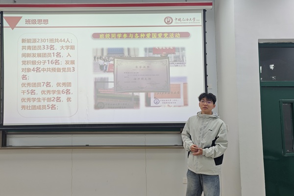 首先,在“学情分析”环节,学习委员刘皓宸结合作业完成情况、考试成绩、课堂表现等数据,从整体成绩分布、学科薄弱点、学习习惯等方面进行全面分析,指出存在的问题并提出改进建议。一方面充分肯定赞扬了高分同学,同时对失利同学一对一分析原因。在分析中,提出“优带劣”提升方案,强调了班级合作的必要性,他说道:“我们是一个集体,要所有人拧成一股绳”。在“班级建设经验分享”环节,新能源2301班班长张超然进行经验传授。结合自身经历,他针对优秀班集体的建成、科技竞赛的参加、保研及学生工作情况等,提出自己的心得与看法。学生们认真学习,积极向张超然提出自己的困惑,并得到他的细心讲解,现场氛围活跃。随后,学生以小组为单位,围绕学情分析中提到的问题、分享的经验展开讨论,结合自身情况制定个人学习改进计划,邀请班级内成绩优异、实践能力突出的学生代表,分别从课堂学习方法、课后复习规划等方面分享个人经验。