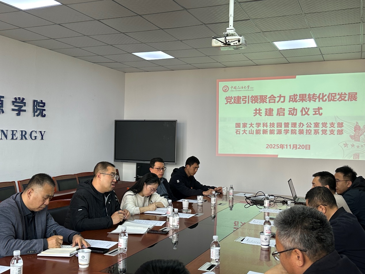 赵东亚副院长在致辞中首先回顾了前期与国家大学科技园已开展的具体合作项目,并介绍了学院正在推进的多个重点项目的最新进展。他强调:“两支部共建是要通过组织纽带,打通成果转化‘最后一公里’,让老师们的科研成果落地生根、服务国家能源战略。期待通过支部共建平台,发挥党支部的组织服务功能,推动更多优秀成果在大学科技园实现转化落地。”