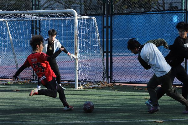 随着主裁判一声哨响,决赛正式拉开战幕。比赛伊始,大三队便展现出强烈的取胜欲望,发起多波有力攻势。大四队则沉着应对,防守严密稳健,双方一度陷入胶着。上半场中段,大三队率先打破场上平衡,通过精妙配合撕开防线,一记劲射破门得分。易边再战,大三队依然掌控着比赛节奏,频频通过流畅传递制造进球机会,再扳一城,由于大三队的体力消耗,大四队重新商讨战术展开反攻,打出了多次高质量反击,并成功攻入一球。