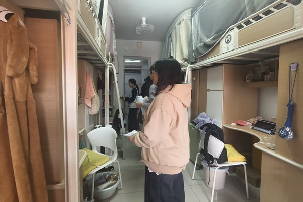 检查开始前,郭晓静简要说明了本次专项检查的评分标准,并阐述本次检查时的注意事项。随后,陈浩强调,“本次宿舍卫生专项检查要严格按照统一评分标准执行,全程公开透明,不搞特殊对待、不偏不倚。要客观记录每间宿舍的实际情况,确保评比结果公平公正,也请大家监督,共同营造整洁有序的宿舍环境。”本次专项检查评分要求实名评分,脏乱床位将被拍照记录并在年级进行通报。