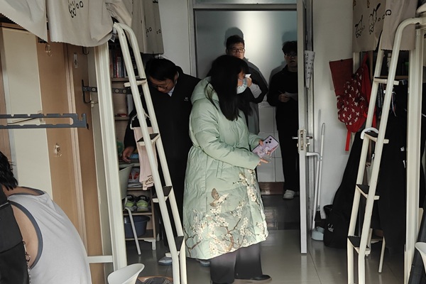 辅导员郭晓静、陈浩到17号楼男生宿舍检查 付荣摄
