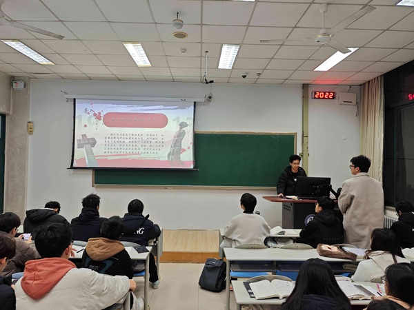 班会伊始,邱云聪首先阐释了铭记历史的核心意义,即缅怀先烈、珍爱和平,以史为鉴捍卫正义,传承抗战精神凝聚复兴合力。随后,他围绕南京大屠杀死难者国家公祭日与长津湖战役胜利纪念日展开内容讲解,简要介绍了两大历史事件的基本脉络,并点明了相关纪念日设立与纪念的深层价值,前者是为铭记民族创伤、警示世人珍爱和平,后者的胜利则在军事、政治、精神层面为国家发展与国际地位奠定了重要基础。接着,邱云聪明确了本次班会的五大目标,涵盖认识历史、缅怀先烈、珍视和平、激发爱国热情、强化责任担当,同时抛出三个与历史使命、青年担当相关的讨论问题。从客观意义来看,这些内容的传递,既帮助班级成员夯实了历史认知,厘清了历史事件的价值内核,也让大家明晰了铭记历史对于当代青年坚定民族自信、筑牢精神根基的重要作用,更搭建起历史与专业使命的联结桥梁,为成员将爱国情怀转化为报国行动提供了思想指引。