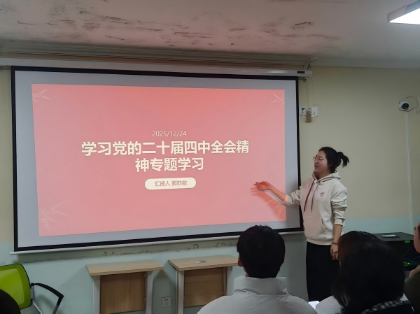 为推动党的二十届四中全会精神入脑入心,落实“智慧团建”系统教育实践模块要求,引导青年团员坚定理想信念、强化责任担当,12月24日,储能2402团支部在心理活动室举办“学习党的二十届四中全会精神”主题学习活动。活动由储能2402团支书郭苏傲与班长申奕涵共同组织,全体团支部成员参与。