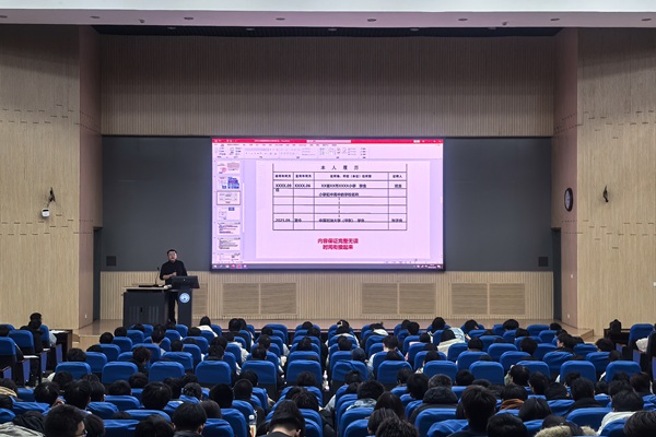 王嘉聚焦学业安排,系统讲解了选课流程。他明确了限选课与公选课的区别,并结合学院专业特点,就如何科学规划学业发展进行了详细指导。现场以电气工程及其自动化专业培养方案为例,演示了课程选择与学业规划的规范流程。此外,他还对学生档案相关材料的填写规范进行了具体说明,强调了材料填写的完整性和准确性。