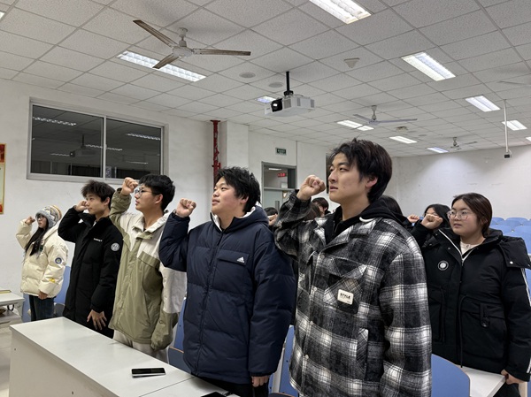 团支部成员宣读入团誓词 秦梓芮摄