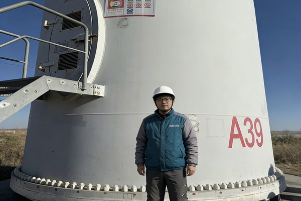 实践队首先抵达风电场升压站,运维负责人介绍,宝山风电场总装机容量48兆瓦,配备32台1.5兆瓦风机,年上网电量超8000万千瓦时。技术人员现场演示了升压站日常巡检流程,队员们重点学习了极端天气下的设备防护措施与电网波动应急调控要点,部分队员结合专业课程知识,就“无功补偿系统的动态调节策略”提出疑问,得到技术人员的针对性解答。随后,实践队前往A39号风机区域开展实地研习。经安全培训后,队员们佩戴防护装备,观察了塔筒底部的振动传感器数据,了解机组状态监测的基本原理。技术人员讲解了风机叶片、齿轮箱、发电机等核心部件的结构与运行策略,重点介绍了低温环境下叶片防冰涂层的应用、加热系统的启动逻辑,以及机组在风速超限后的自动停机保护机制。在风电场中控中心,技术人员演示了远程监控平台的操作流程,展示了全场风机的实时运行数据与管控逻辑。队员们围绕风电场运维数字化、故障预测等议题与技术人员交流,结合专业知识提出疑问,得到了针对性解答。
