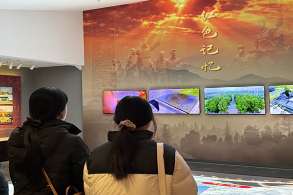 实践队在二七纪念馆内观看红色记忆展陈 周硕扬摄