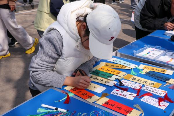 本次特色摊位围绕趣味运动与手工创作设置互动环节,以“完成两项趣味游戏,解锁手作体验”为参与规则,打造跳格子、投壶、书签DIY三大特色环节,兼顾互动性、趣味性与体验感。跳格子游戏区里,学生们结伴参与、同台比拼,遵循单格单脚、双格双脚的规则迈步跳跃,尽显青春朝气;投壶环节中,学生们凝神瞄准、稳步投箭,在体验传统民俗游戏的过程中锻炼专注力与手眼协调能力。完成两项游戏挑战后,学生们便可进入书签DIY手作区,发挥创意巧思,在书签上描绘春日繁花、书写暖心寄语,将春日美好与节日心意融入其中,亲手制作的专属书签,也成为本次活动独一份的纪念。活动全程,现场参与热情高涨,学生们在运动中舒展身心,在手作中感受美好,沉浸式体验思美节的独特魅力。