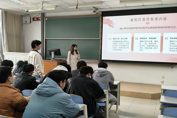 活动伊始,梁酩钰向团员们讲解了第63个学雷锋纪念日与第27个中国青年志愿者服务日的由来,梳理雷锋精神的历史脉络,解读新时代雷锋精神核心内涵。在集体研学环节,团员们共同观看《雷锋》主题纪录片,通过影像资料直观了解雷锋同志的生平事迹。随后以小组为单位围绕“新时代如何践行雷锋精神”展开讨论,各小组代表依次走上讲台,结合自身学习生活实际分享研讨成果,交流学习感悟。本次活动还设置榜样学习与知识竞答环节。团员们集体学习“当代雷锋”郭明义、“最美奋斗者”庄仕华等先进人物的事迹;支部邀请参与过志愿服务的同学上台,分享自身的志愿实践经历与心得体会,用身边事例传递志愿精神。知识竞答环节中,团员们以小组为单位参与抢答,题目围绕雷锋生平事迹、雷锋精神内涵、志愿服务知识等内容设置,各小组积极作答,在比拼中巩固前期的学习成果。活动最后,梁酩钰带领全体团员开展志愿实践规划研讨,确定了支部后续志愿服务的具体形式与实施思路,明确了各自在志愿实践中的参与方向。