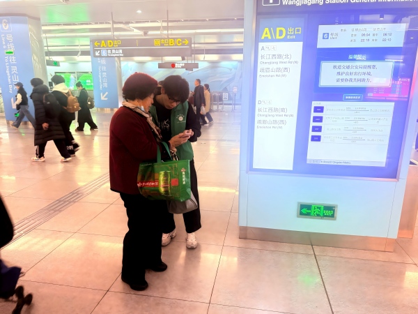 志愿者帮助老人查看线路 常裕琳摄
